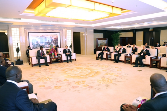 倫古總統(tǒng)與肖亞慶主任會見現(xiàn)場全景