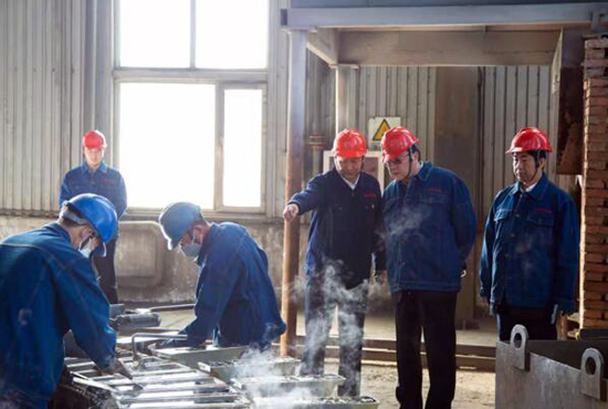深入中色鋅業(yè)生產(chǎn)一線進(jìn)行調(diào)研 按照集團(tuán)公司黨委第二批主題教育總體安排,10月25日上午,王彤宙書記、常青副總經(jīng)理深入中色鋅業(yè)焙燒、熔鑄車間生產(chǎn)一線進(jìn)行融入式調(diào)研,詳細(xì)了解了中色鋅業(yè)的生產(chǎn)組織、工藝流程、作業(yè)環(huán)境和安全環(huán)保等情況。